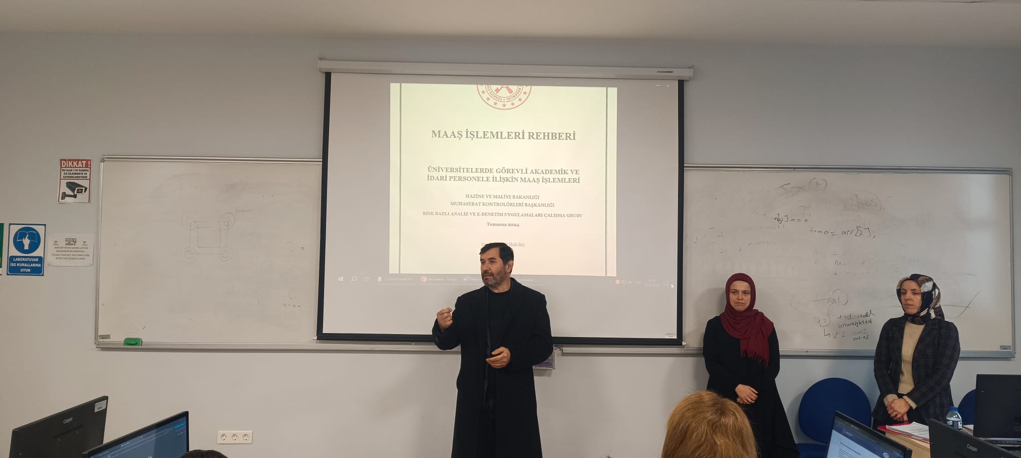 KBÜ Akademi 2026 Yılı hizmet içi eğitimlerinin ilki olan ve maaş iş ve işlemleri ile görevli idari personellerimize yönelik hazırlanan Maaş Hesaplama Eğitimi, Üniversitemiz Mühendislik ve Doğa Bilimleri Fakültesi Laboratuvar Bİnası B3-02 Salonunda 09.00-12.00 ile 14.00-17.00 saatleri arasında Şef Özlem KARAÇAM ve Şef Melahat TURAN ÖZDEMİR ile yapılmıştır.