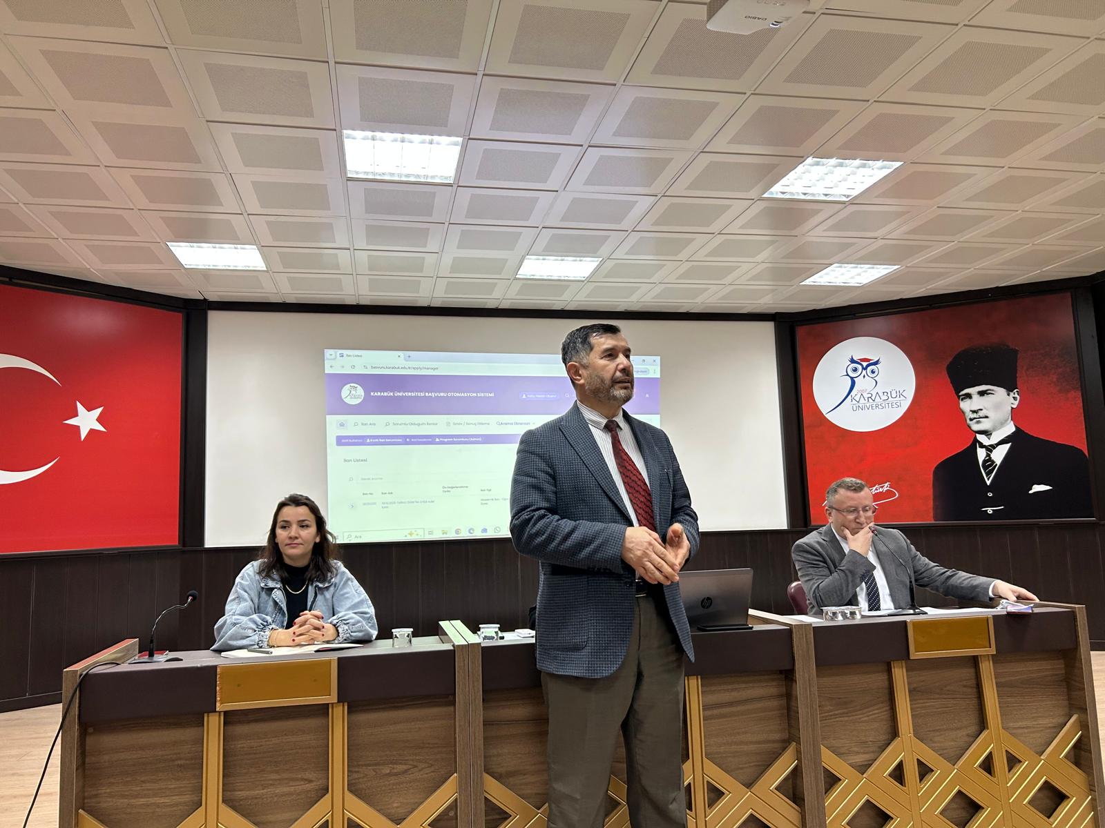 KBÜ Akademi hizmet içi eğitimleri kapsamında Üniversitemiz fakülte,enstitü ve meslek yüksekokulu sekreterleriyle akademik iş ve işlem yapan idari personellerimize yönelik 12 Şubat 2026 Perşembe günü saat 14.00'te Üniversitemiz Dr. Ekrem KARAKAYA Konferans Salonunda Akademik Personel Şube Müdürü İsmail KARAYEL'in sunumuyla "Akademik Personel İşlemleri Eğitimi" düzenlenmiştir. Eğitimde,